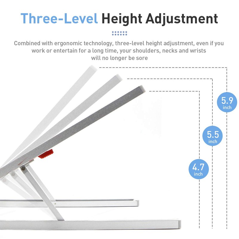- ERGONOMIC DESIGN:Three adjustable, comfortable eye-level design ease you from the tension of using laptop for a long time and protect your spine.