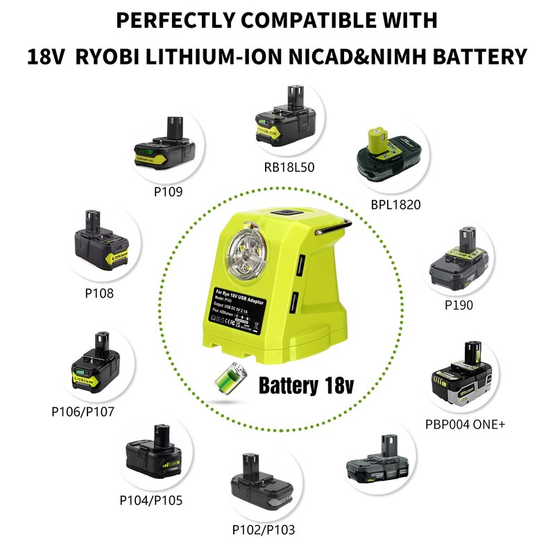 - Perfectly Compatible with Ryobi Battery: Taingwei portable spotlight powered by ryobi 18v lithium battery p102 p103 p105 p107 p108 p109 ryobi one+ cordless tool battery etc.