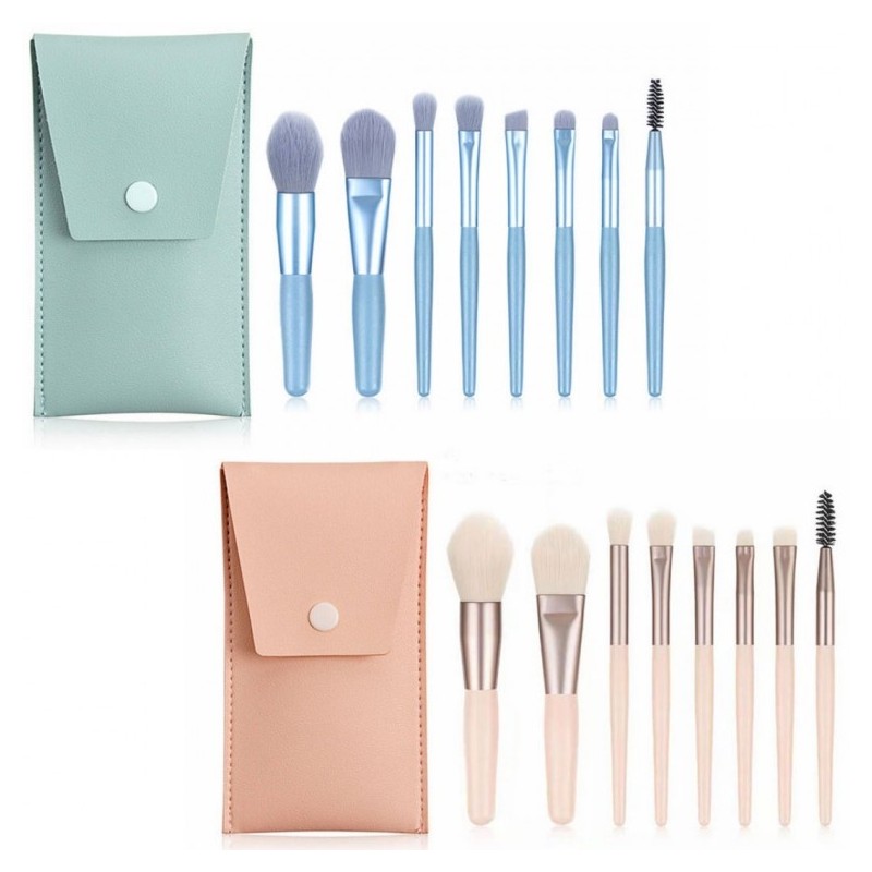 Portable Makeup Brush Set with Leather Case (8 Pieces, Random Color) Brush (Random Color) 2ea