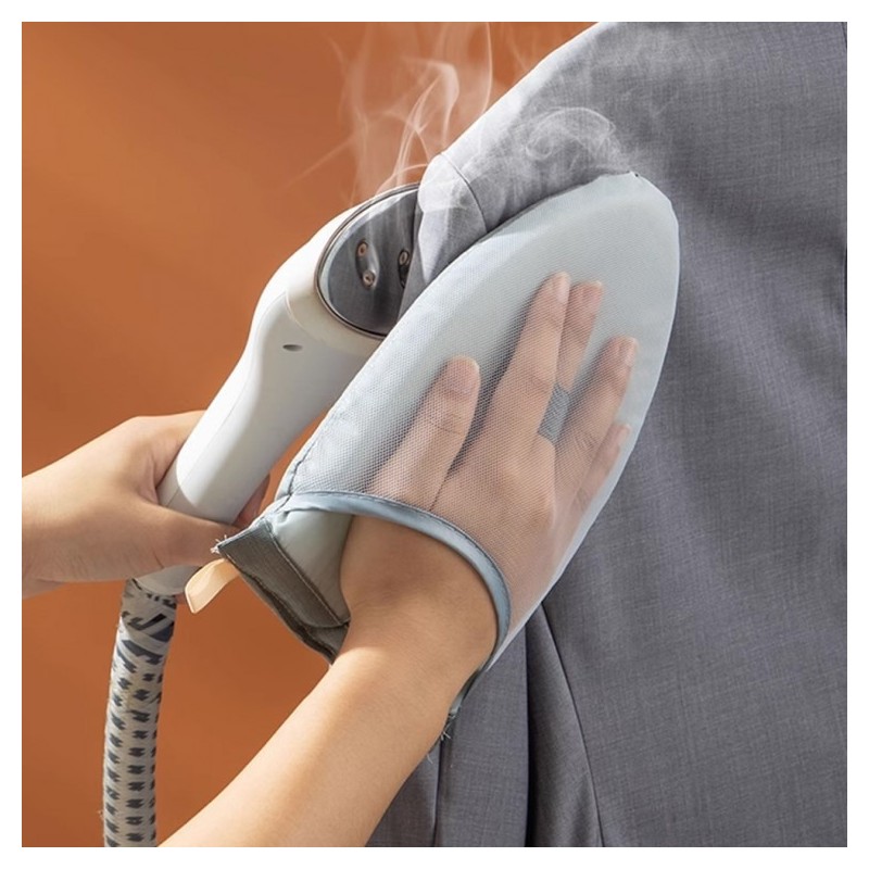 👋 Experience the ultimate in garment care convenience with our clever two-in-one design. The comfortable ironing glove protects your hand while providing a stable surface, and the integrated pad shields your furniture, ensuring a smooth finish every time without damaging surfaces.