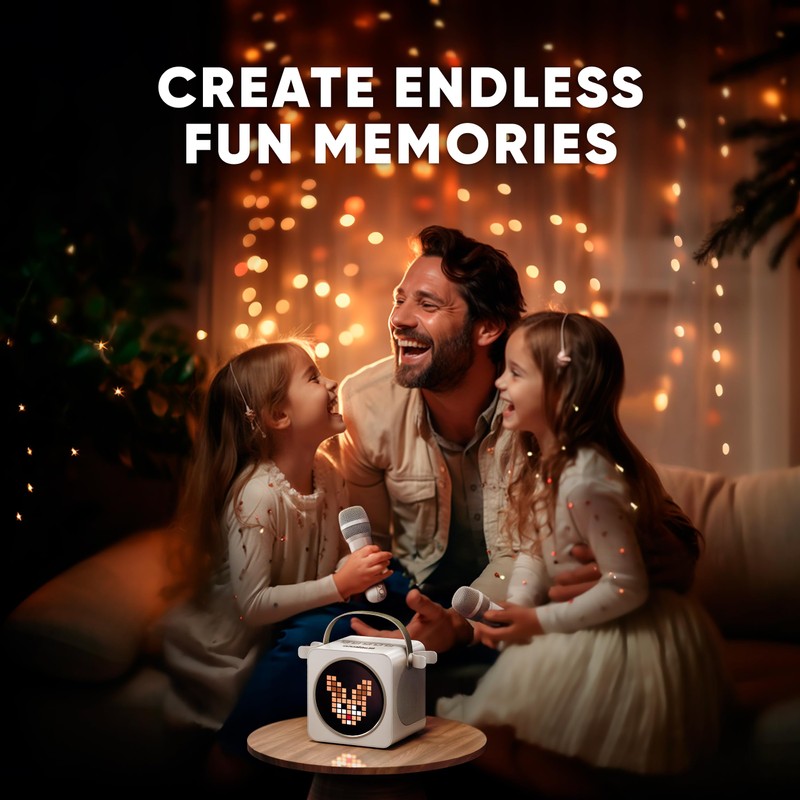 - π€ππ‘ππ ππ§ππ πππ πππ¦π£πππ¬ - Experience vibrant visuals with our 81-bit LED screen, a highlight of our premium karaoke system. Switch between Christmas, Birthday, Love, and Joy-themed animations all by clicking a button on the machine. The LEDs, harmoniously combined with our powerful karaoke speaker, not only set the perfect mood for every song but also elevate the overall ambiance. Dive into a world where every karaoke session becomes a memorable event, truly unforgettable.