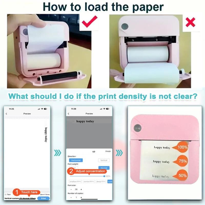 Portable Mini Printer, 1 Count USB Rechargeable Bluetooth-compatible Thermal Printer with 5 Rolls Paper, Compatible with iOS & Android, Office Supplies:_one-size_Pink