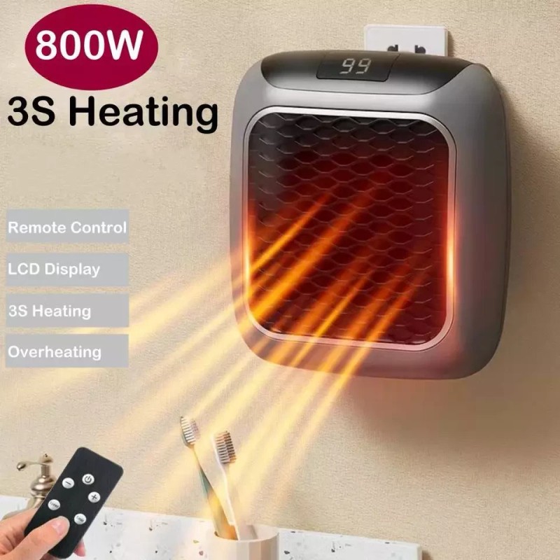 Portable Mini Space Heater 800W Electric Wall Space Heater with Remote Indoor