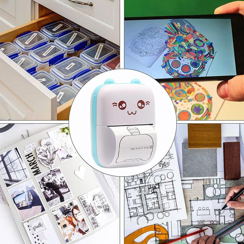 Portable Mini Thermal Printer, 1 Count Rechargeable Wireless Photo Printer with 1 Roll Paper, Instant Photo Printer, Pocket Inkless Thermal Printer for Home Office School, Office Stationery & Supplies
