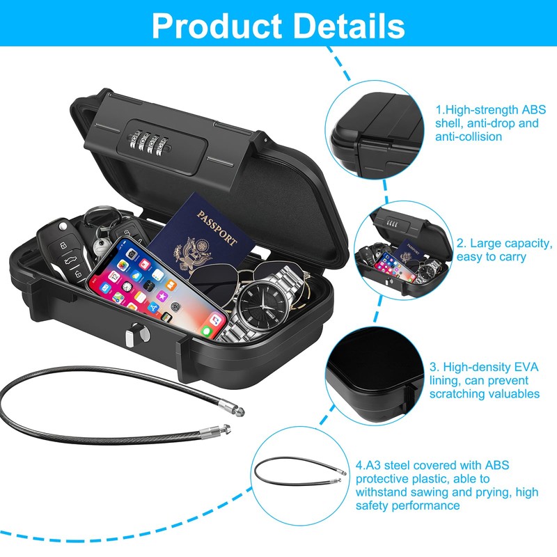 - Multifunctional mini safe: compact and portable, the anti-theft mini safes combination lock can be used as a travel safe or personal safe to protect you from loss or theft, ideal for travel, home, hotel, campus or office. In addition, this highly secure safe is also a perfect gift for family and friends.