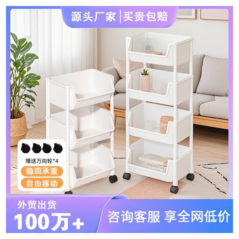 Portable Multi-layer Storage Trolley Cart - Under Desk, Kitchen, Bathroom & Snack Organizer Cabi [Open] White 4-Tier 4ea