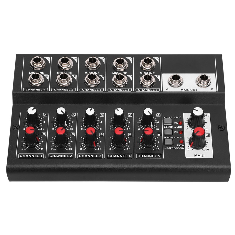 Portable Multifunctional FiveChannel Stereo Audio Sound Mixer Compact