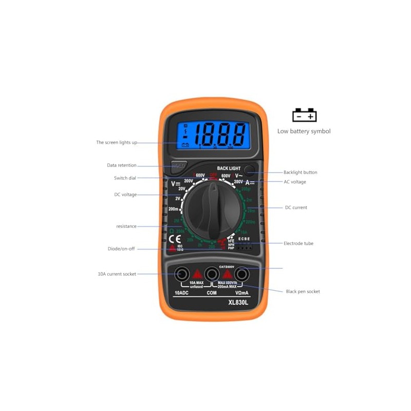 - 3. Data hold function: data storage function for data storage and backlight function for clear reading and testing in dark places.
