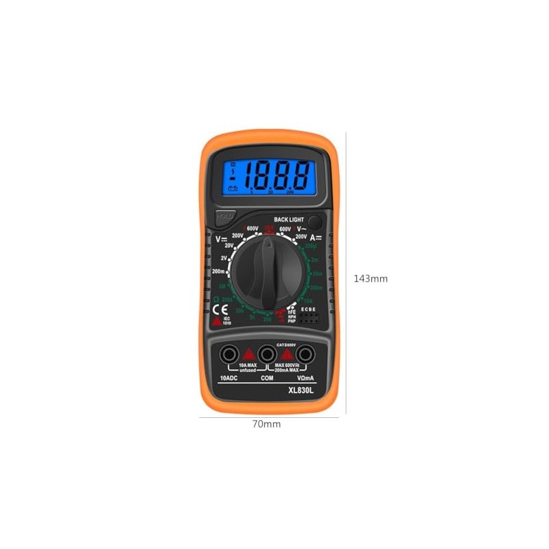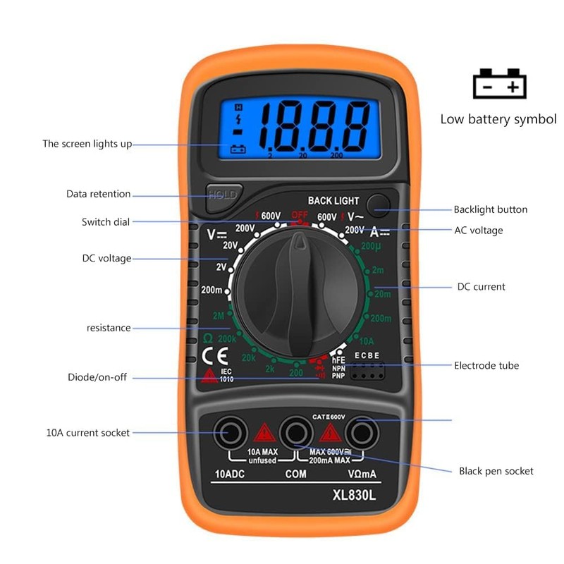 Portable Multimeter Tools, LCD Backlight Multi-Function Multimeter High Precision Tester for Professional Factory and School (Orange)