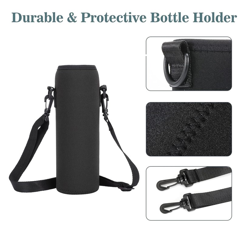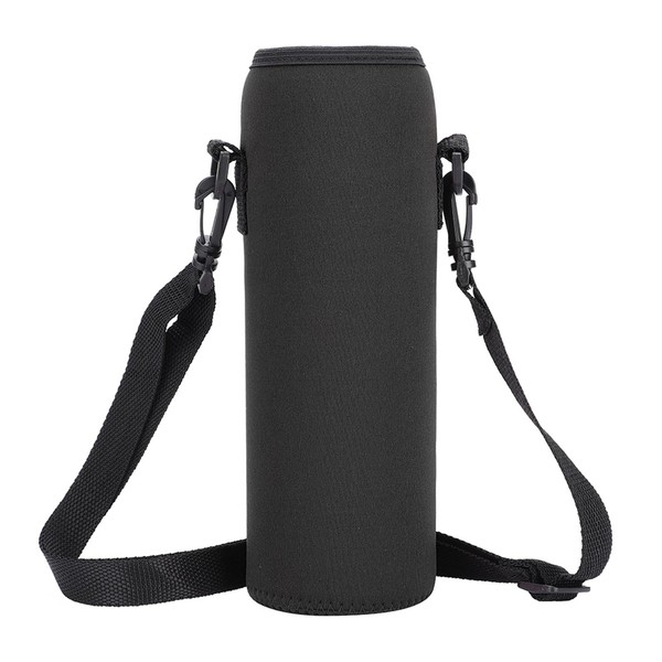 Portable Neoprene Water Bottle Bag Drop and Shock Proof Waterproof Protective Case for Outdoor Bottle with Shoulder Strap for Hiking Camping Hunting Travel, black