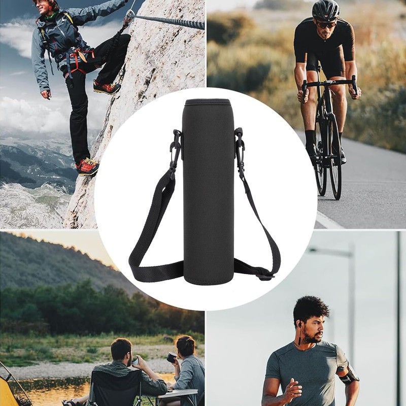 Portable Neoprene Water Bottle Bag Drop and Shock Proof Waterproof Protective Case for Outdoor Bottle with Shoulder Strap for Hiking Camping Hunting Travel, black