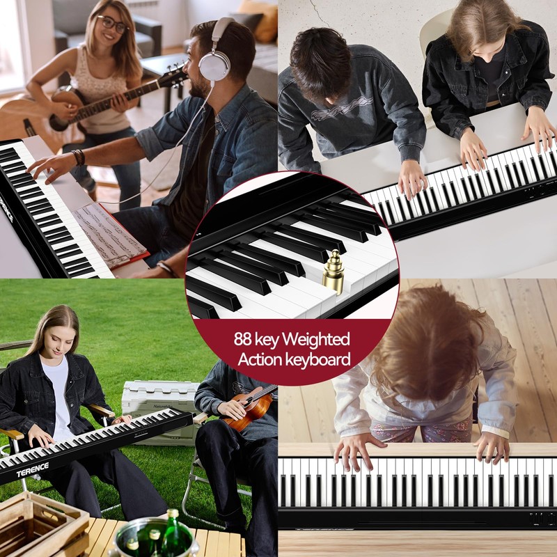 Portable Piano Keyboard Foldable: Portable Keyboard Piano 88 keys Semi-Weighted keyboard with MIDI Bluetooth TERENCE Electric Folding Piano Kit for Adult Toddler Kids