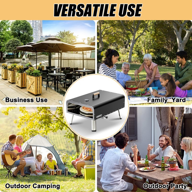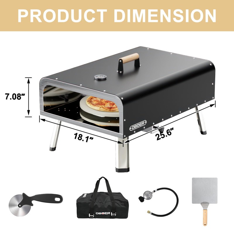 - ๐๐ฅ๐ฅ-๐๐ง๐๐ฅ๐ฎ๐ฌ๐ข๐ฏ๐ ๐๐๐๐๐ฌ๐ฌ๐จ๐ซ๐ฒ ๐๐ข๐ญ: Everything you need is includedโa 16โโ pizza stone for that perfect crispy crust, a stainless steel pizza peel, gas adapter, detachable wood tray, and a waterproof carry bag. With easy temperature control, this oven adapts to every recipe, from slow roasts to high-heat searing, making cooking feel effortless every time