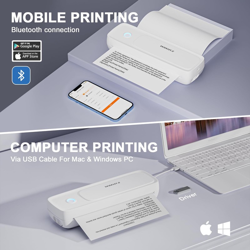 - 【Mobile printer】Bluetooth Printer-strong compatibility Printer, Our mobile sticker printer easily connects to smart devices with iOS & Android systems via Bluetooth, and also functions as a compact printer for laptops and computers. Setup takes just 5 minutes from unboxing, making it a breeze to get started. (Note: For smartphone printing, please download the app in advance. For laptops, install the driver first.)