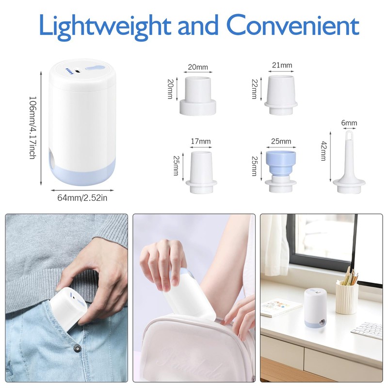 Portable Pump for Inflatables, Mini Air Pump for Inflatables,Inflation/Deflation, USB-C Electric Inflator Air Pump with 5 Nozzles, Tiny Air Pumps for Pool Floats Air Mattress Vacuum Storage Bags