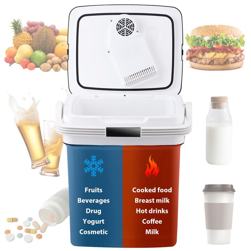 - Portable Car Freezer: This is the perfect companion for your short trips. It holds the ideal temperature for a long time, the lid can be locked, and this cooler allows you to reach cold or warm with one hand when you need it most. Its compact size makes it easy to carry and easy to travel