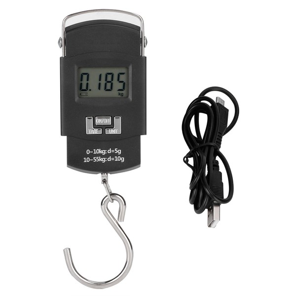 1、Electronic scale, weighing capacity is 0‑50kg, support kg, lb, oz and jin unit conversion. 2、High accuracy, quick response and stable performance, easy to carry and operate. 3、The LCD display with backlight can directly display the weighing result. 4、Using high‑strength ABS engineering plastic shell and stainless steel hook, more durable to use. 5、Automatic or manual data lock and unlock, support automatic reset, with tare function. 6、After 5s of inactivity, backlight will turn off; after pressing any button or changing weight of item, backlight will turn on. 7、Suitable for weighing items that are difficult to put on a platform scale, industry, agriculture, household, luggage, parcels, fishing.