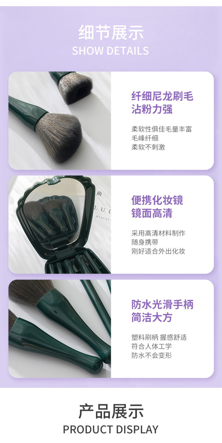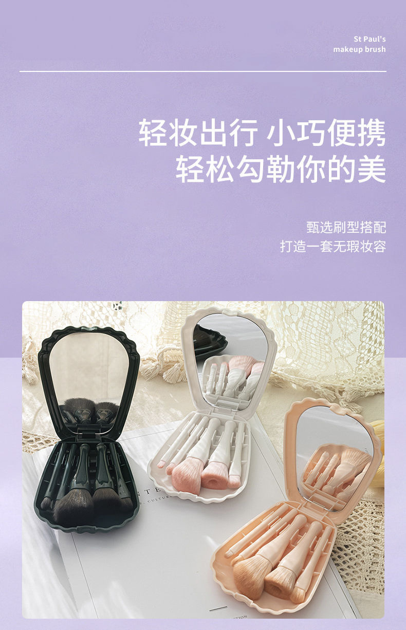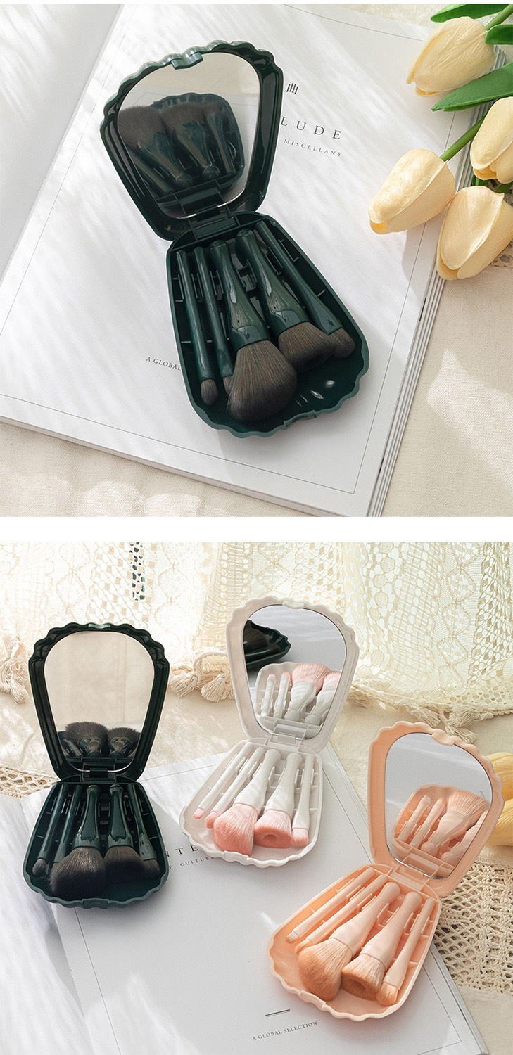 Portable Shell Makeup Brush Set with Box, 5 Mini Brushes Free Size/Pink 15ea