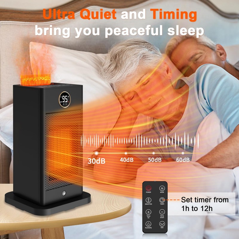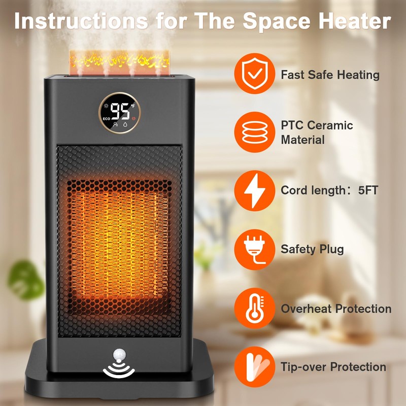 • 【Fast Heating with Sensor】: Our PTC space heater for large rooms heats up in just 2 seconds. The infrared sensor function activates when you hold down the "M" button for 3 seconds. It detects your presence and automatically turns on/off, saving energy and eliminating the need to manually switch it on and off as you come and go.