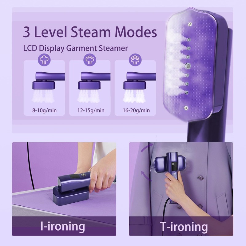 - LCD Display: The built-in LCD display shows the real-time temperature, making it easy to adjust the clothes steamer according to your fabric's requirements