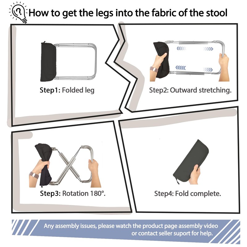 - PORTABLE: 13" high portable folding stool, temporary seat for hiking and long queuing.