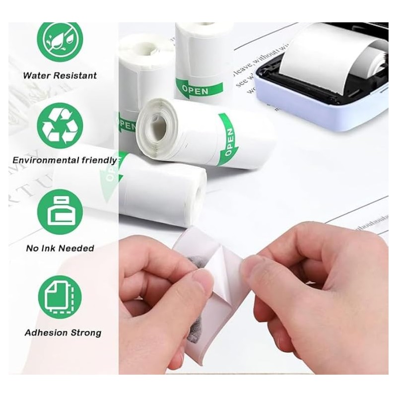 Portable Thermal Printer and Paper roll for Labels, Receipts, Pictures, Notes, 203dpi, 58mm Thermal Paper, Pink or Blue (5, white Sticky Paper roll)