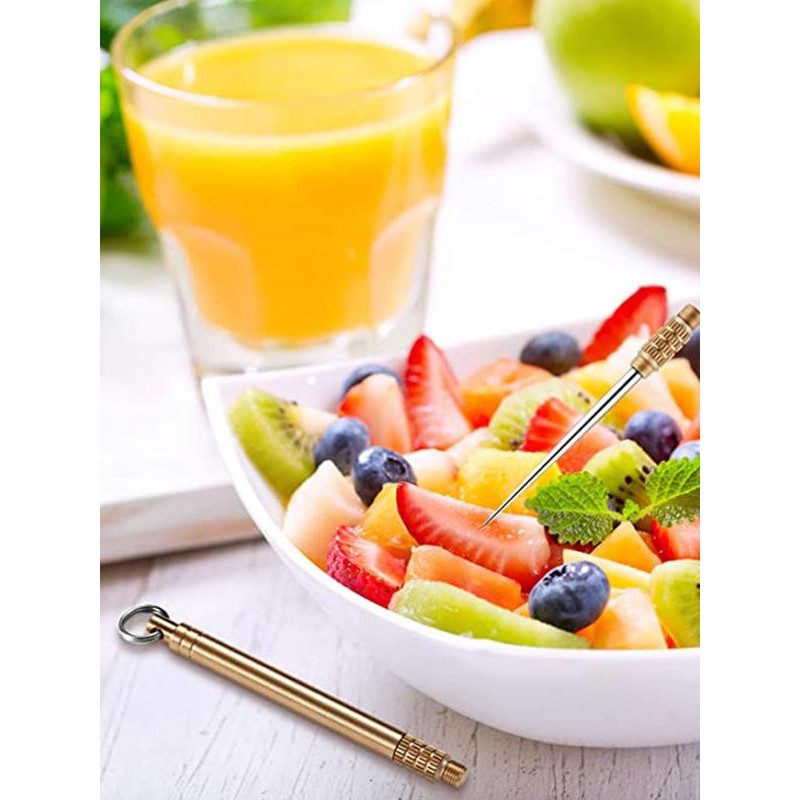 Portable Titanium Toothpicks, Fall Pocket Toothpicks Keychain, Brass Toothpick Holder for Picnic Camping Accessories, Trendy Exquisite Keychain for Birthday Gift
