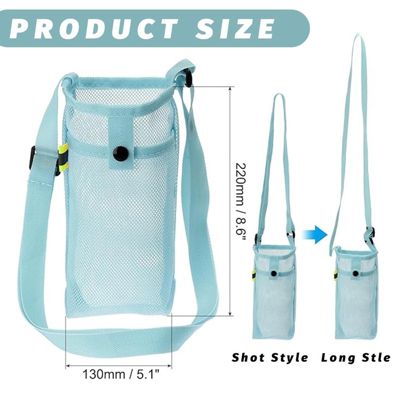 - Comfortable shoulder strap: mesh water bottle covers are equipped with a comfortable and smooth shoulder strap that does not scratch the skin when carrying and reduces the strain on the shoulder, which gives a comfortable fit.