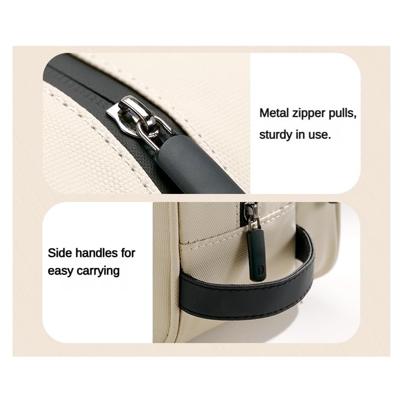 - Waterproof Leatherette Protection The water-resistant leatherette fabric blocks spills, splashes, and moisture—keeping toiletries, cosmetics, and gadgets dry. Perfect for bathroom use, rainy trips, or beach getaways;