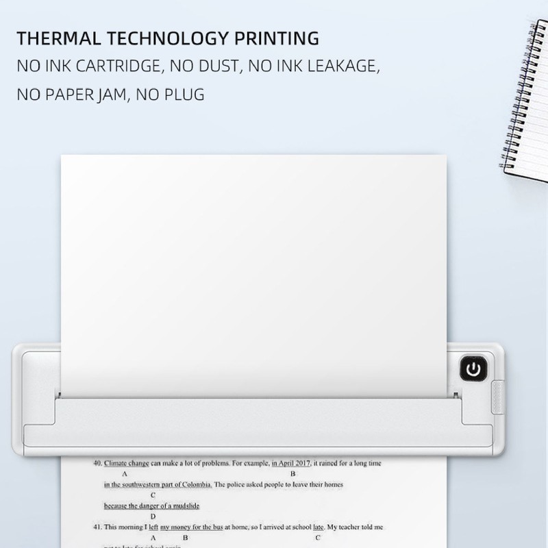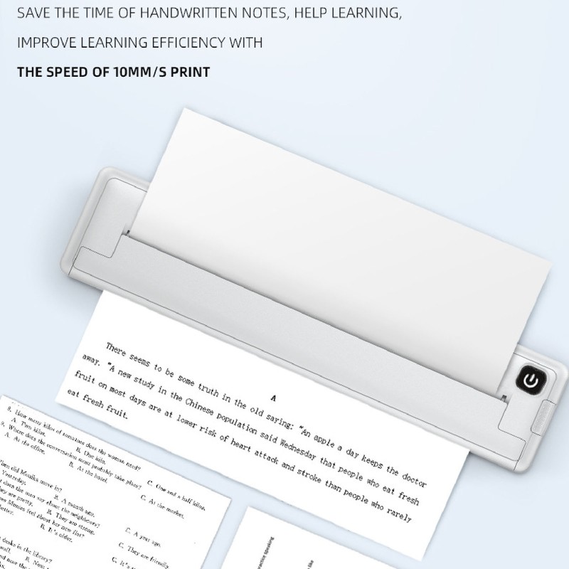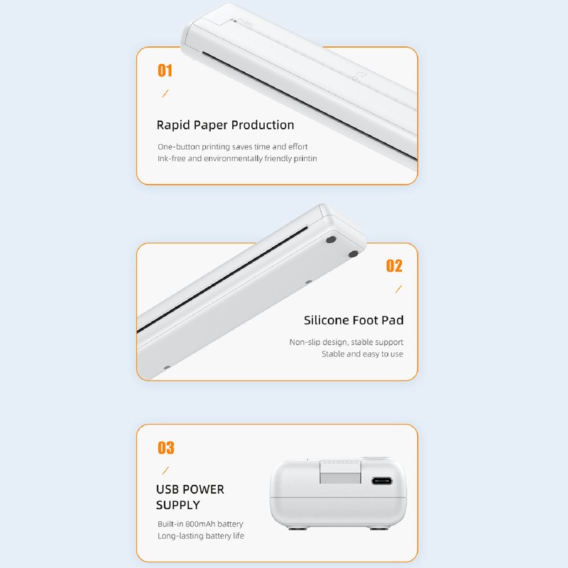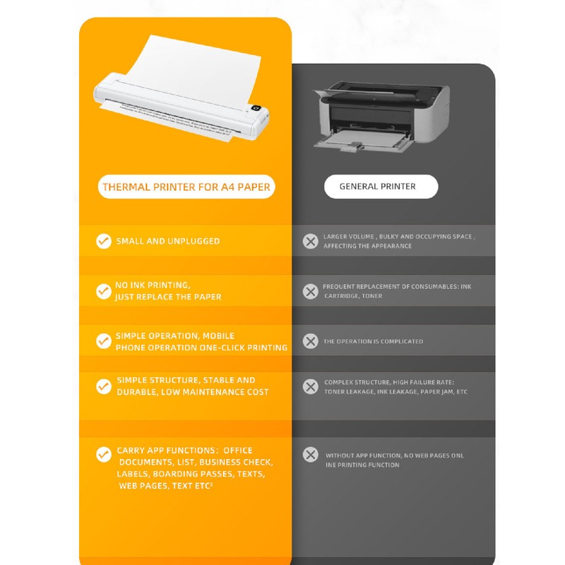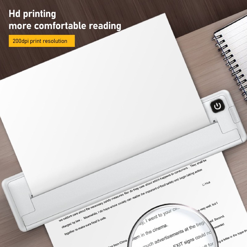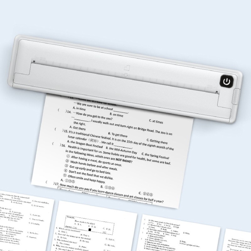 1、Inkless Printing: With advanced thermal technology, the small printer does not need to use any carbon, ribbon, ink, just carry the printer paper, enjoy convenient printing; Measures 10.4 x 2.3 x 1.2in, printer can simply slide into a backpack or briefcase. 2、Multiple Sizes: Portable printer supports both roll paper and folded thermal paper, 210mm or 218mm wide thermal paper, US Letter and Legal, A4, A5, 2in, 3in, 4in(216/210/107/77/ 57mm width), allowing you print documents, contracts, invoices, boarding passes, study notes, recipes, letters, receipts anytime, anywhere. 3、Bluetooth Connection: Wireless thermal printer connects easily via Bluetooth for iOS and for Android devices, as well as compact printer for laptops and computers. Download for iprint app for smartphone printing and install laptop drivers for printing. 4、Clear Printing and Long Lasting Battery: Experience crystal clear printing with the inkless portable travel printer. Built in 1000mAh battery allows for continuous printing of 90 sheets on a single charge, with 90 days standby time. 5、Lightweight and Versatile: Wireless printer weighing only 0.95 pounds, ideal for mobile printing. Suitable for home, school, travel, office, outdoor, cafes, tattoo parlors, construction sites, meet the printing needs of various groups of people, also the best choice for gifts.