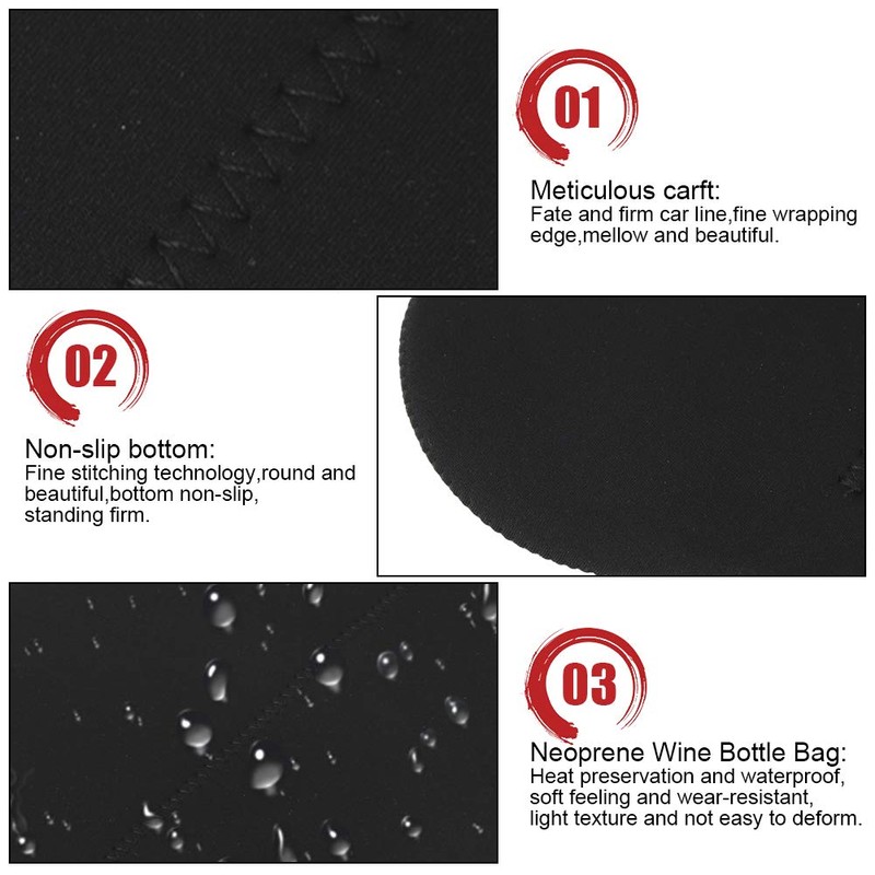- Protección de aislamiento: la bolsa hecha de este material especial puede proteger su botella para que no se rompa durante el transporte, prolongar la frescura y el tiempo de conservación del calor, y garantizar que disfrute de su bebida a la temperatura ideal.