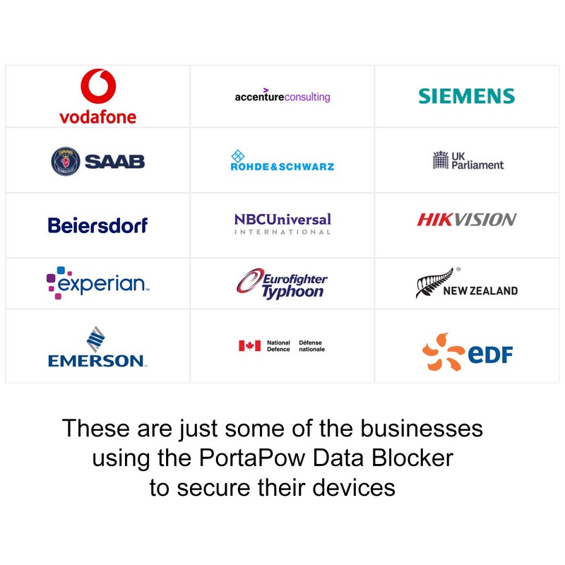 • PortaPow Data Blockers are used by the governments of the USA, Canada, UK and New Zealand as well as 100s of corporations around the world to secure their devices