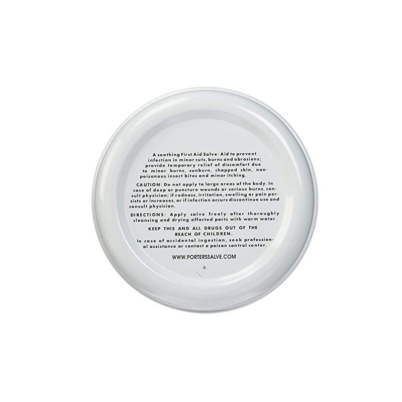 A soothing first aid salve, aid to prevent infection in minor burns and abrasions. Provides temporary relief of discomfort due to minor burns, sunburn, chapped skin, non-poisonous insect bites and minor itching.