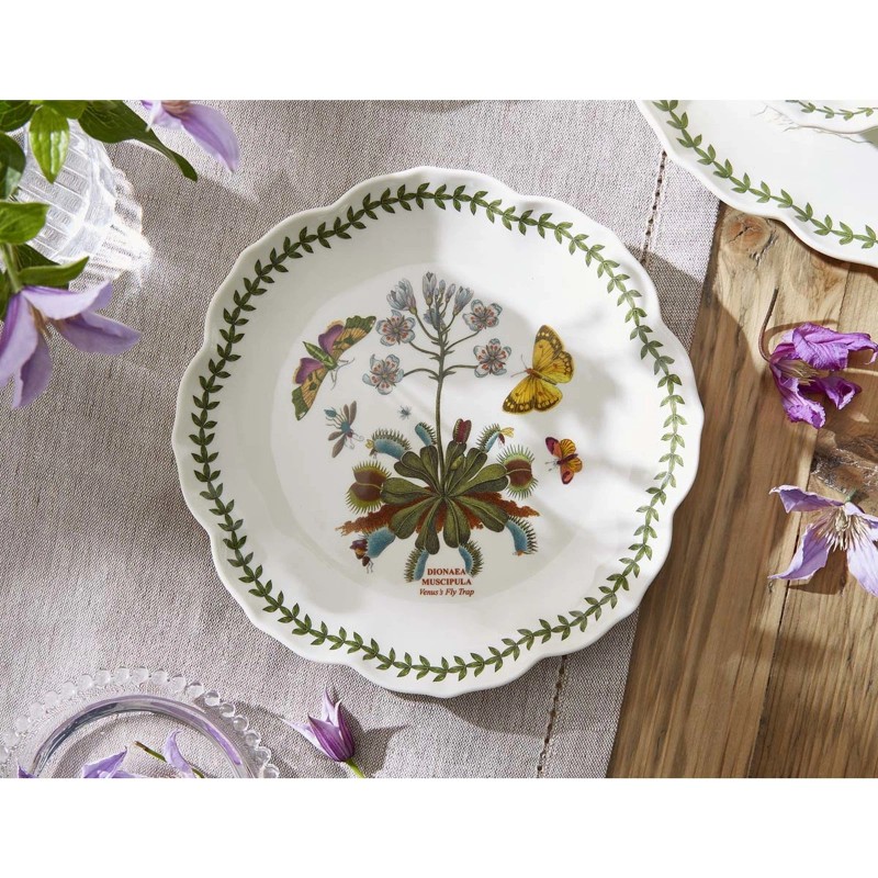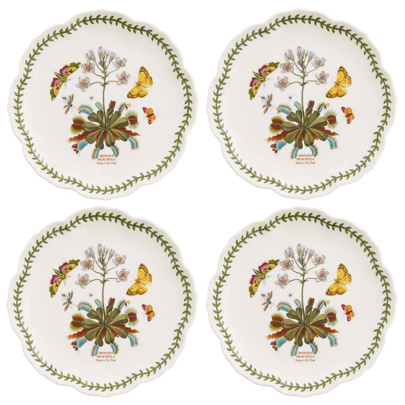 Portmeirion Botanic Garden Lotus Blossom Side Plates, Set of 4 - Venus Fly Trap Illustration with Butterflies, 8.8" Floral Porcelain Dishes for Hosting, Entertainment, Restaurant Use - New
