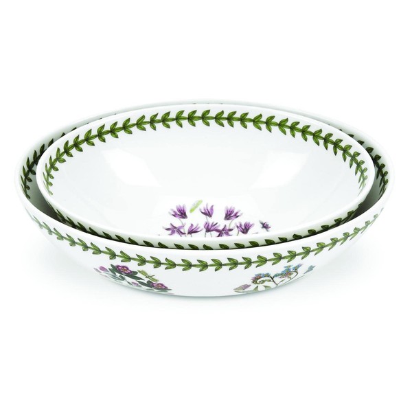 Portmeirion Botanic Garden Nested Bowls (2-Piece), Cyclamen & Daisy Motif - Fine Porcelain, Chip-Resistant - Dishwasher, Microwave, Freezer, Oven Safe - Made in England