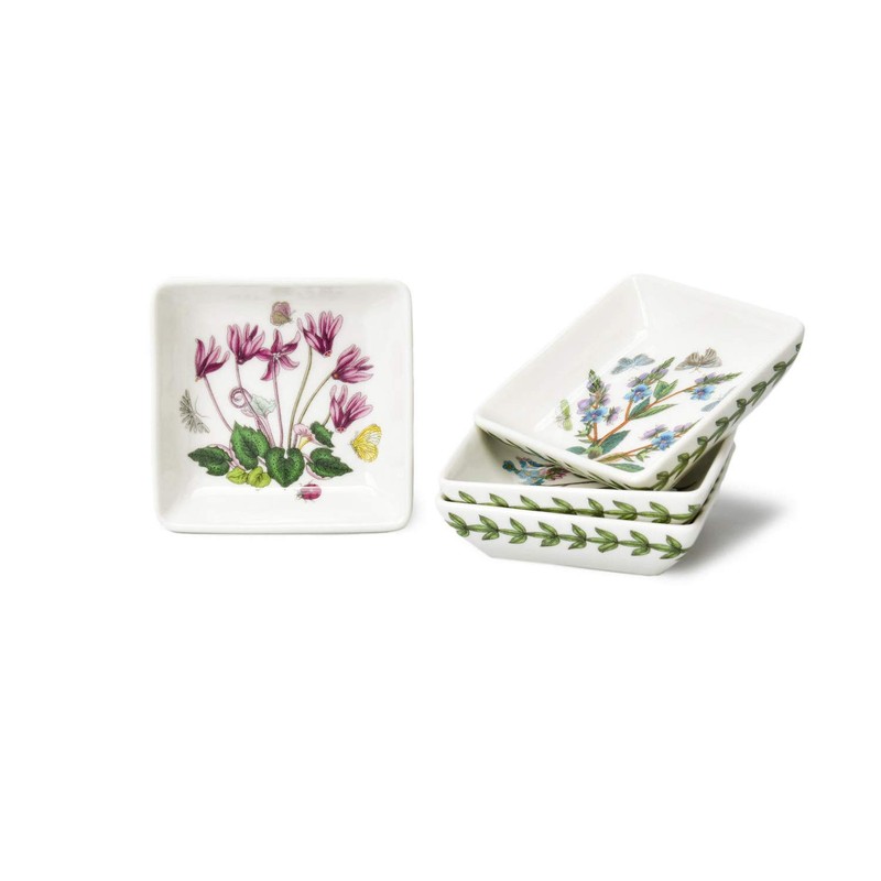 - SERVE WITH STYLE: These Botanic Garden 4 inch square mini Plates from are ideal for dips, condiments or serving treats, these square mini dishes also make a gorgeous gift.