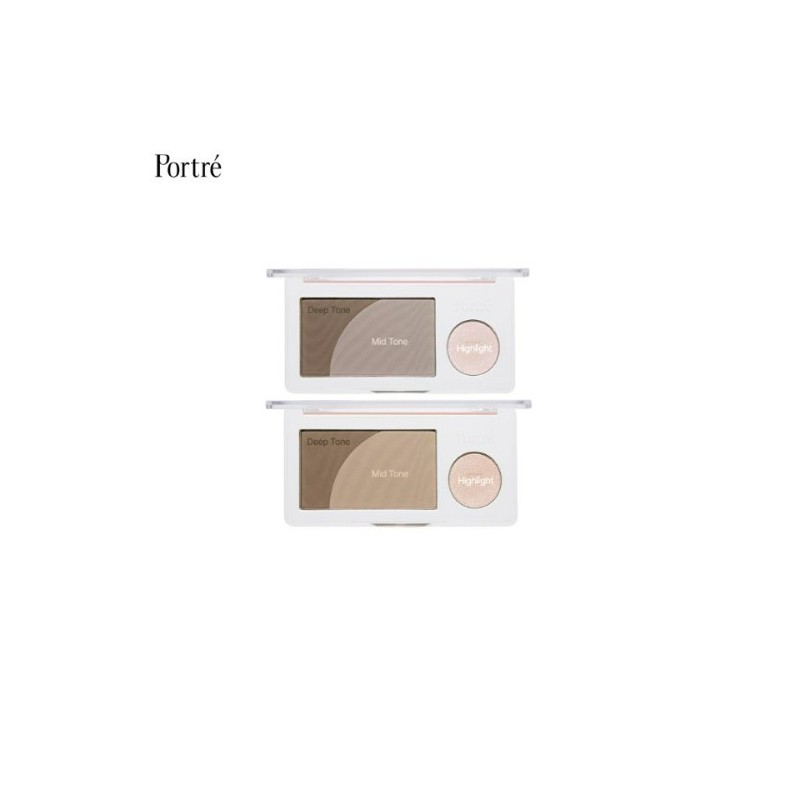 PORTRE Shade & Shine Duo is an all-in-one face palette combining a silky matte contour powder and a soft shimmering highlighter.