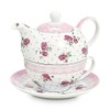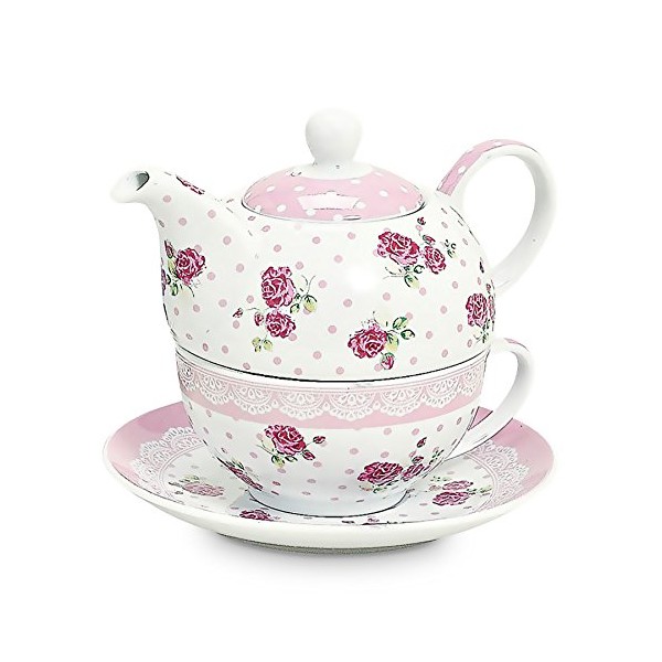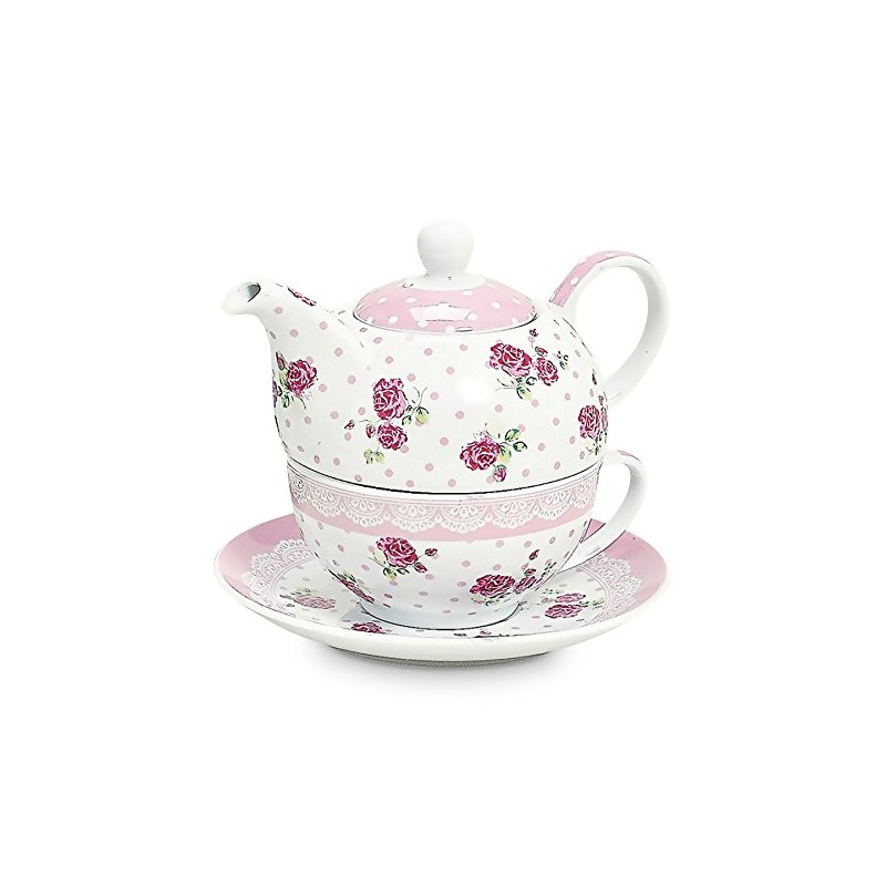3 teiliges Porzellan-Set für Tee und Kaffee All in One ist hier das Motto. Kännchen, Tasse und Unterteller liebevoll in einem praktischen Set gepackt. Alle drei Teile sind mit einem schönen Blumenmuster und Punkten verziert. Das Set ist in Rosa / Pink gehalten und ist auch in Ihrer Glasvitrine ein echter Blickfang. Porzellan Set 3-tlg. bestehend aus: Kanne, Tasse und Unterteller Komplett ca. 15x14 cm Spülmaschinengeeignet