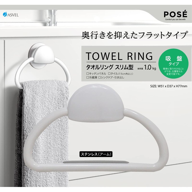 Posay K134118 Kitchen Towel Ring, Suction Cup, White