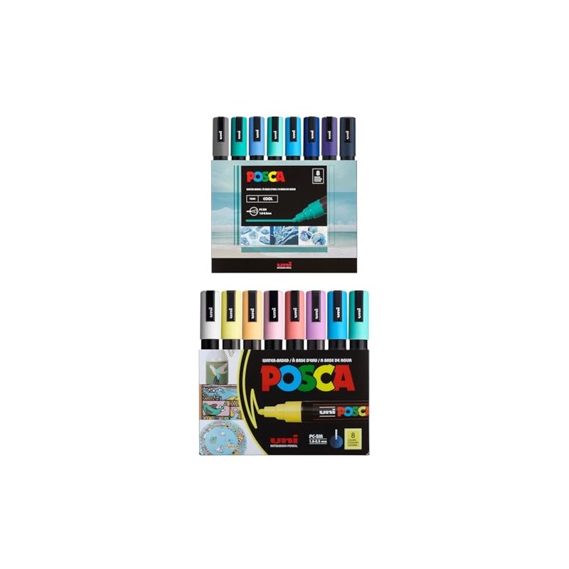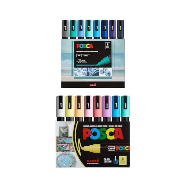 posca Markers Bundle, 16 Medium Paint Markers 5M - 8 Cool Tones + 8 Soft Tones