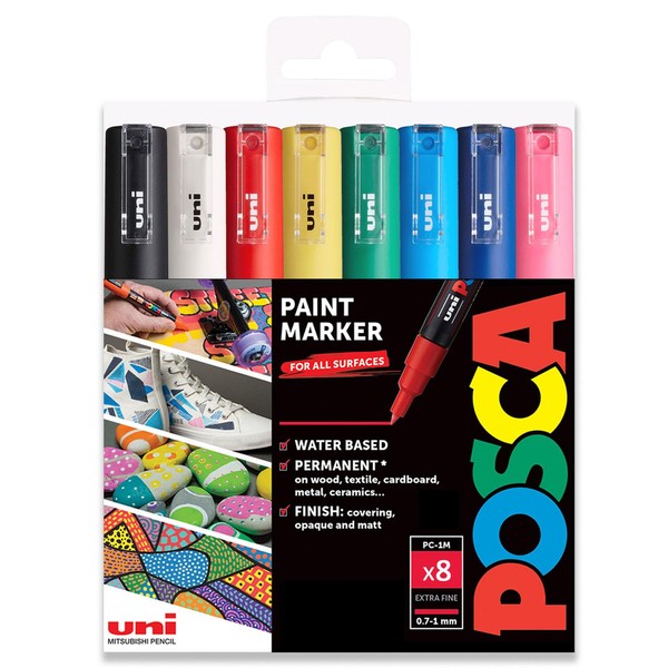 Posca - PC-1M Art Paint Markers - Set of 8 - in Plastic Wallet (Essential Tones)