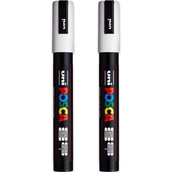 Posca PC-5M Paint Marker Art Pens - 1.8-2.5mm Nib - White Ink - Pack of 2