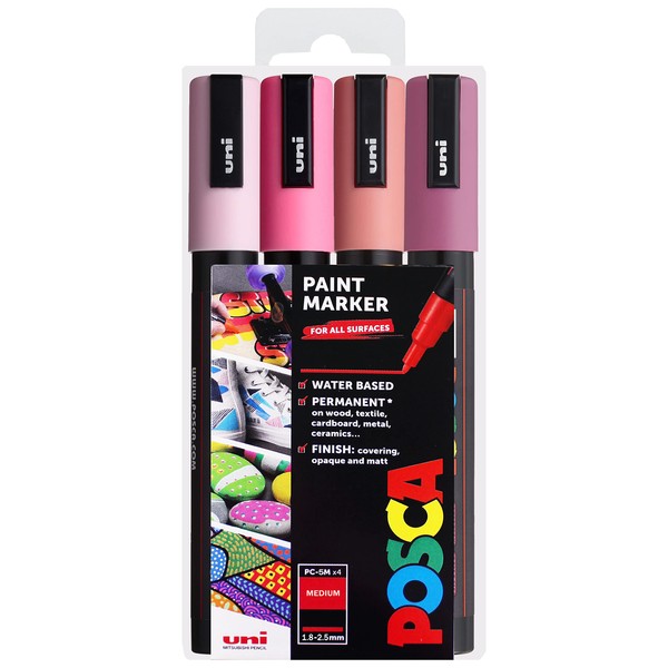 Posca Uni PC-5M Art Paint Markers - Set of 4 - In Plastic Wallet - Pink Tones
