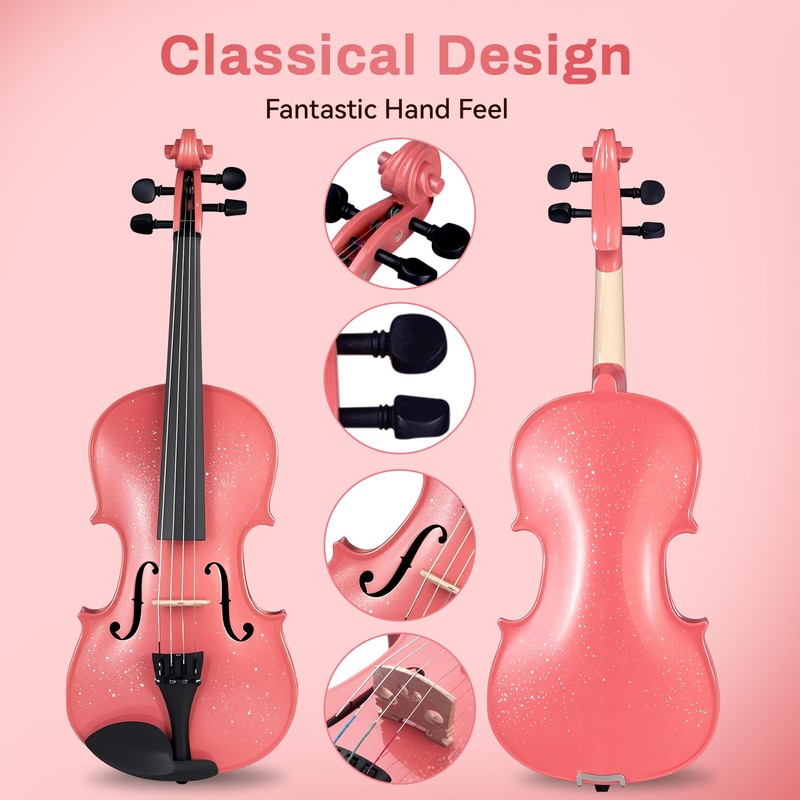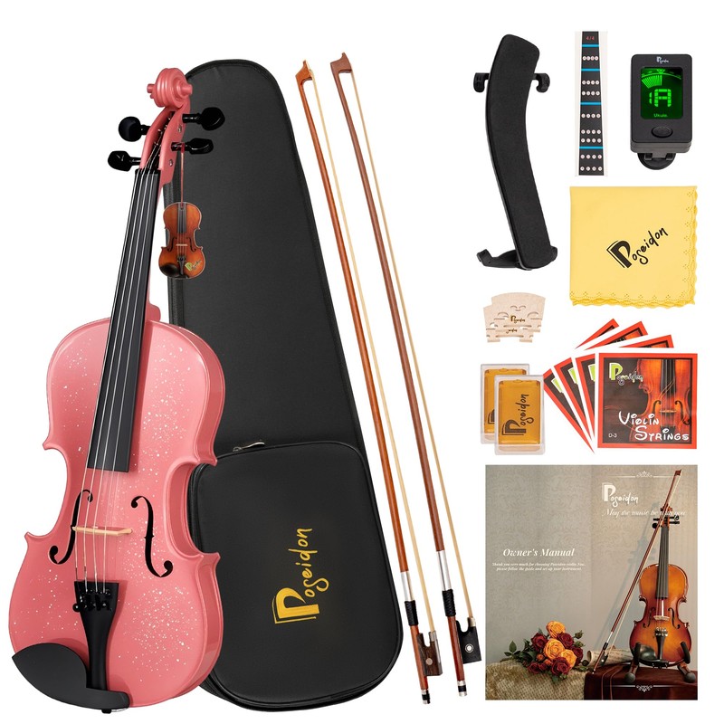 - Elegant Design: Poseidon always committed to manufacture of high-end beginner violins, the pink violin 4/4 size is made of spruce wood panel, maple back board, neck and side plate with glossy pink color. Along with an solidwood fingerboard, pegs, pegged chin rest, violin bows and an alloy tailpiece with 4 built-in fine tuners. Additional, the whole violin is handmade entirely by our outstanding crafters. It's a perfect work of art