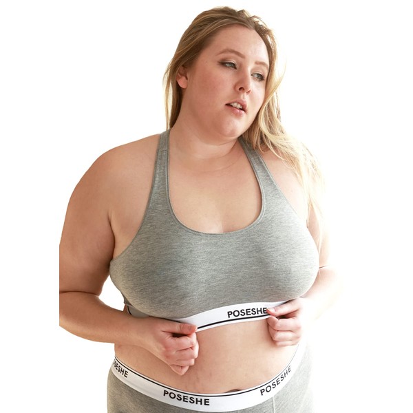 POSESHE Women's Bralettes Bras, Regular & Plus Size Ladies Everyday Bras, Sustainable Modal Seamless Bralettes, Grey,2X