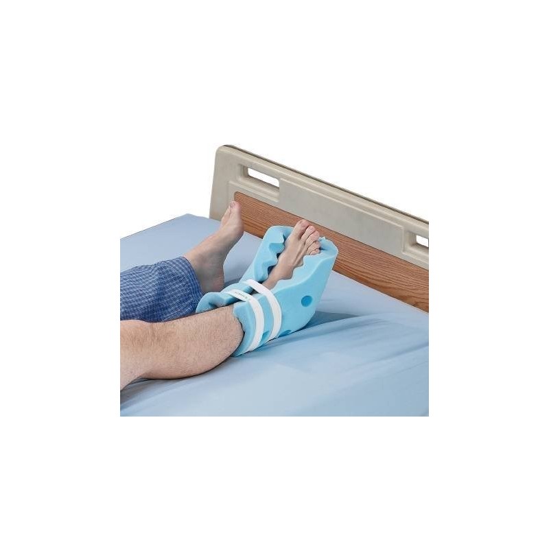 Economical foam foot guard helps isolate the heel and prevent skin breakdown Heel and side ventilation holes help promote air circulation around the foot Soft, lightweight convoluted foam Foam securement straps Meets CA #117, Section E Flame Retardancy Standards One pair per package