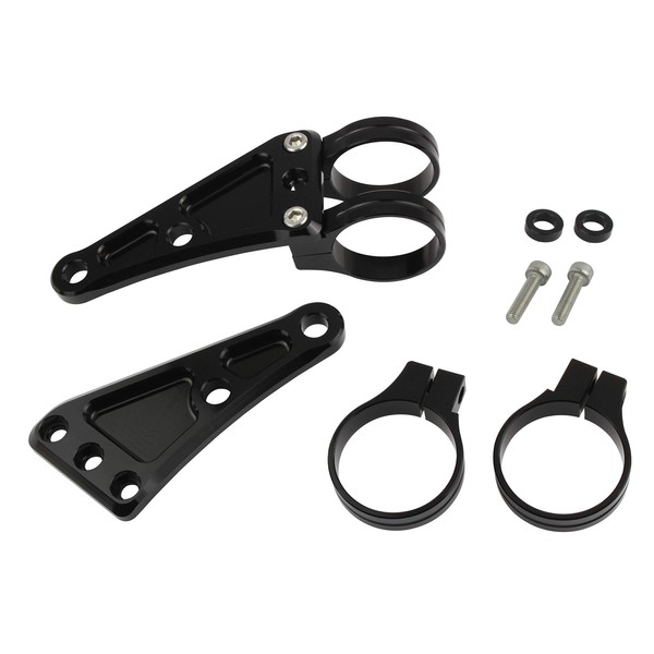 POSH 032048-06 Motorcycle Supplies Machine Long Headlight Stay, 2 Circle Clamp Type, Fork Diameter 1.7 inches (43 mm), Black