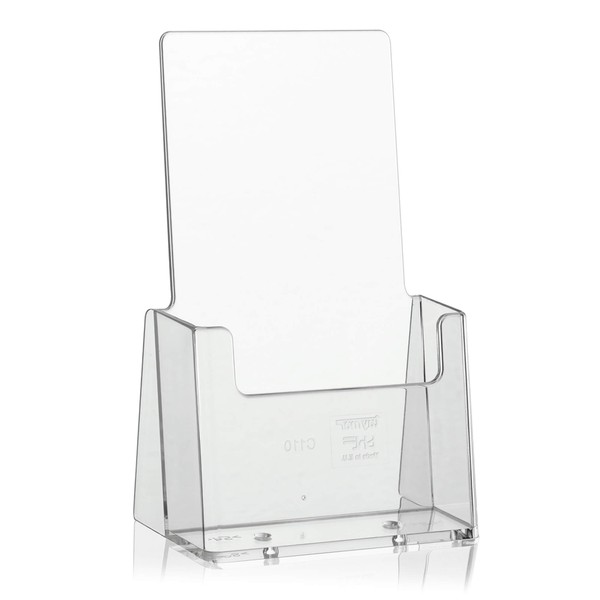 - High-quality branded brochure stand for DIN long flyers and postcards, stable and crystal clear