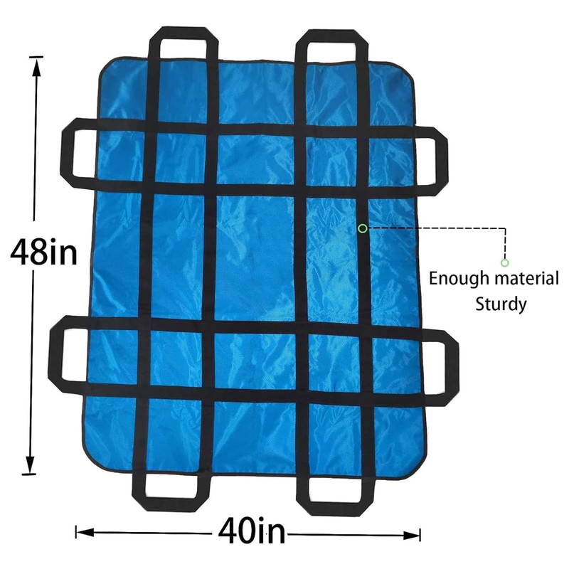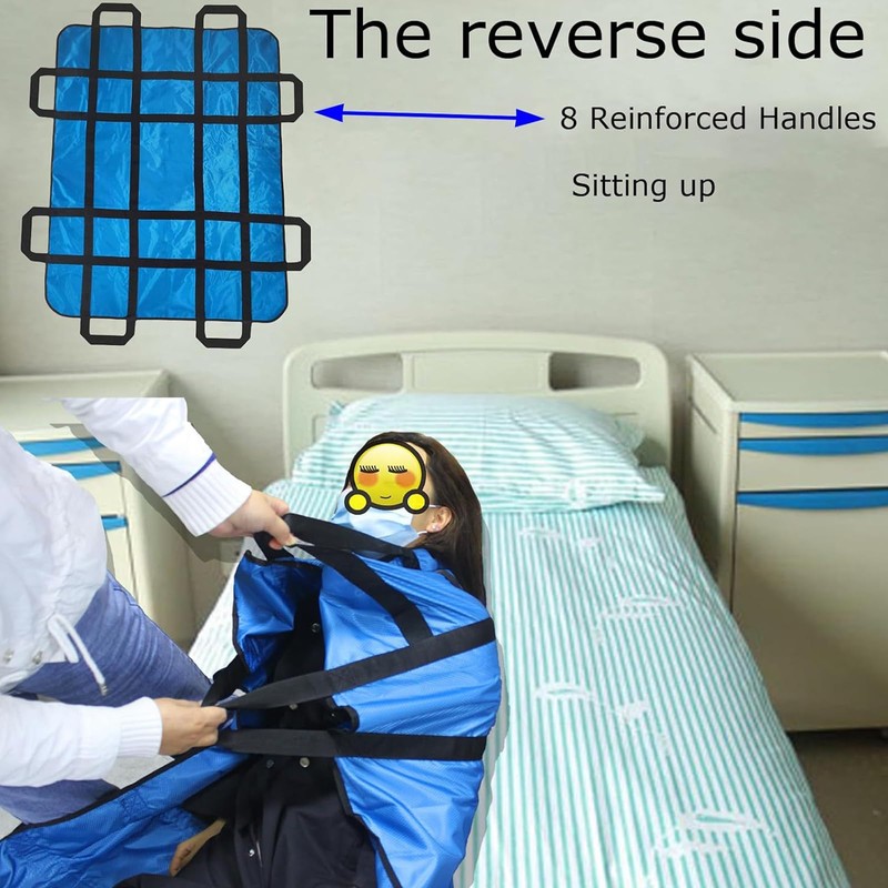 - 【TURNING,SITTING UPREPOSITIONING AND LIFTING MADE EASIER】Our double-sided oxford cloth patient sheet is equipped with 8 heavy-duty, reinforced handles that can become easier to help you transfer, reposit, turn and lift the patient.When there is a very heavy patient, eight handles can be lifted by four people.