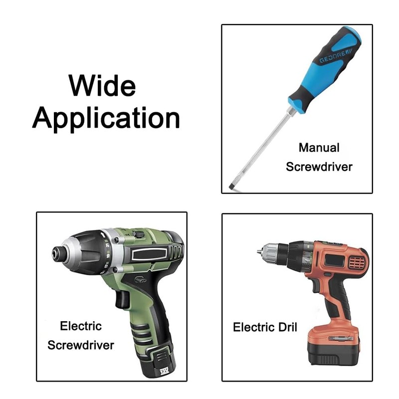 - Wide application: these bits are widely compatible with electric screwdrivers, manual screwdrivers, drills and hand drills. They are easy to install and remove, making them suitable for the maintenance and installation of equipment in the home and industrial sector